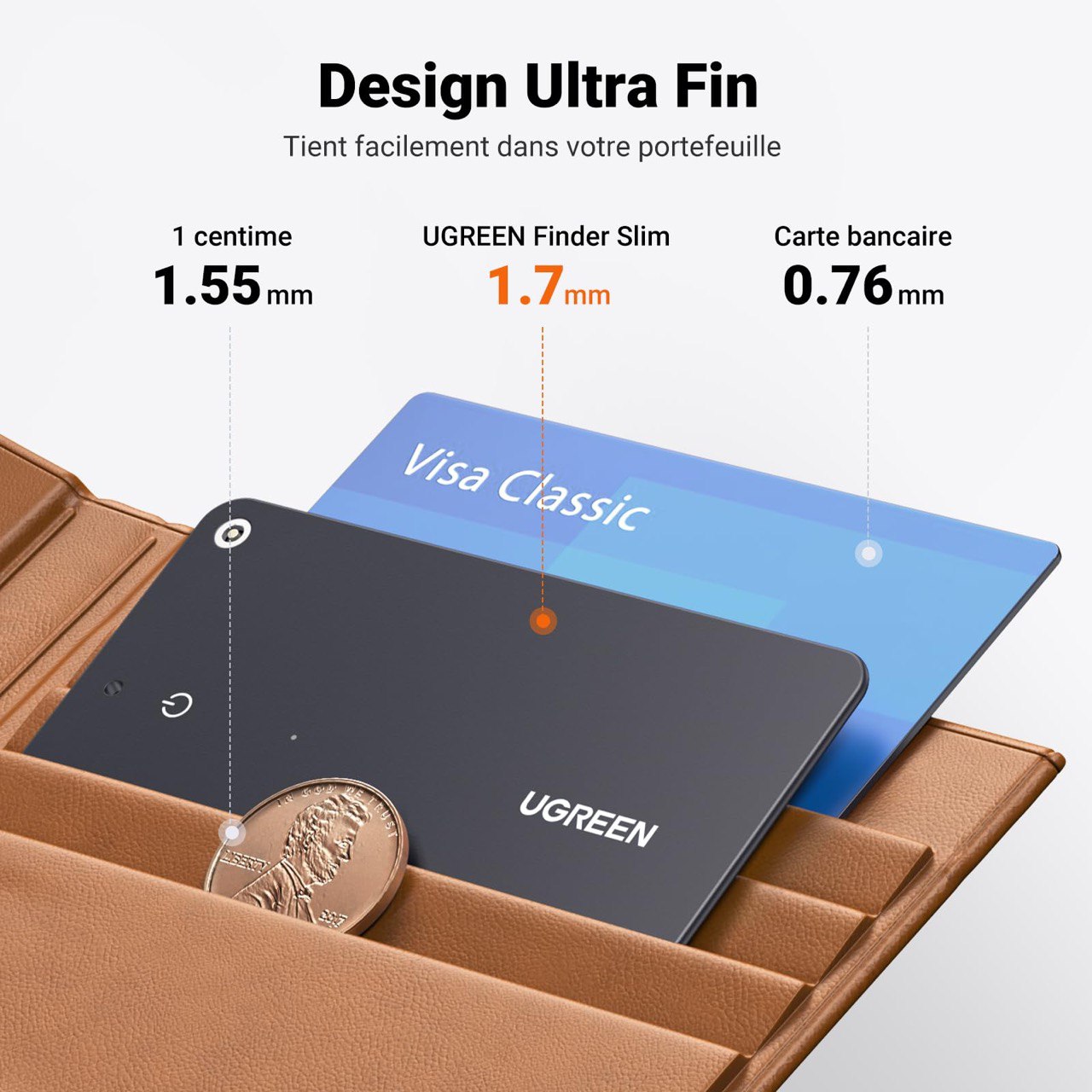 Oui. Avec seulement 3 mm d'épaisseur (approximativement l'épaisseur de deux cartes de crédit superposées), il est conçu pour être l'un des traceurs les plus minces sur le marché, le rendant compatible avec la majorité des fentes pour cartes de portefeuille.